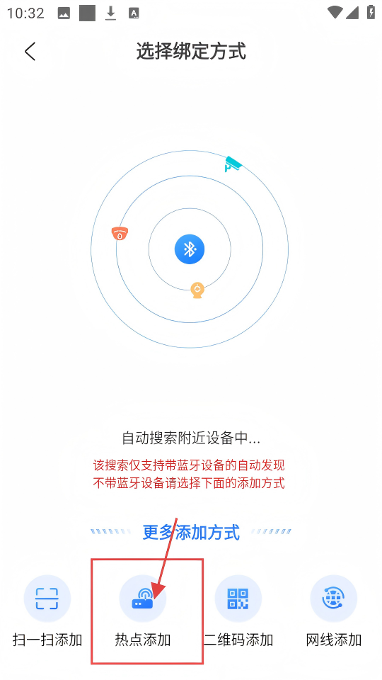1、在选择绑定方式页面,点击【热点添加】,就能进入热点绑定流程啦。