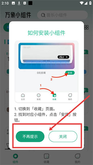 3、弹出【如何安装小组件】提示框后,点击【关闭】,就能继续后续的组件操作啦。