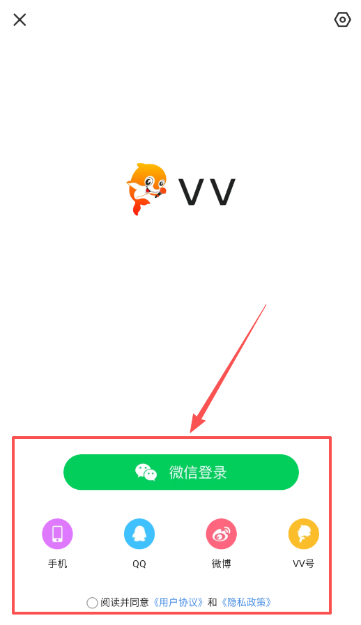 1、打开VV软件后,推荐使用微信或手机号一键登录,记得勾选同意用户协议和隐私政策,这样就能最快开始你的音乐之旅了。