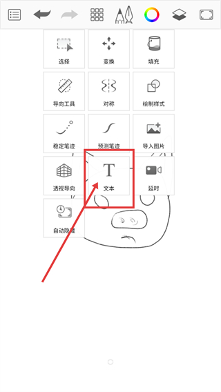 2、展开功能菜单后找到【文本】选项并点击,就能进入文本编辑模式,准备在画作上添加文字内容哦。
