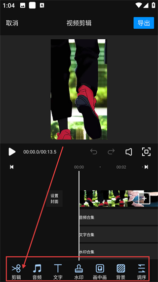 3、在视频剪辑页,点底部【剪辑】选项,就能打开剪辑功能,对视频片段进行分割、调整啦。