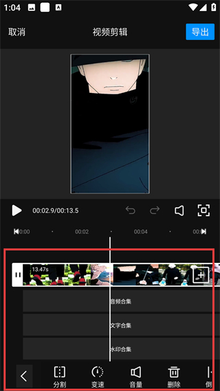 4、选中视频片段后,可用底部的【分割】【变速】等功能调整片段,让视频效果更贴合需求哦。