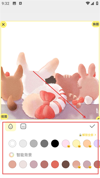 4、在背景面板里选择喜欢的颜色或素材,就能给抠好的图换上新背景,让画面更丰富哦。