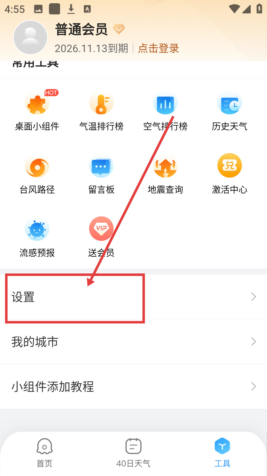 2、在工具界面,点【设置】,能进入设置页调整应用选项啦。