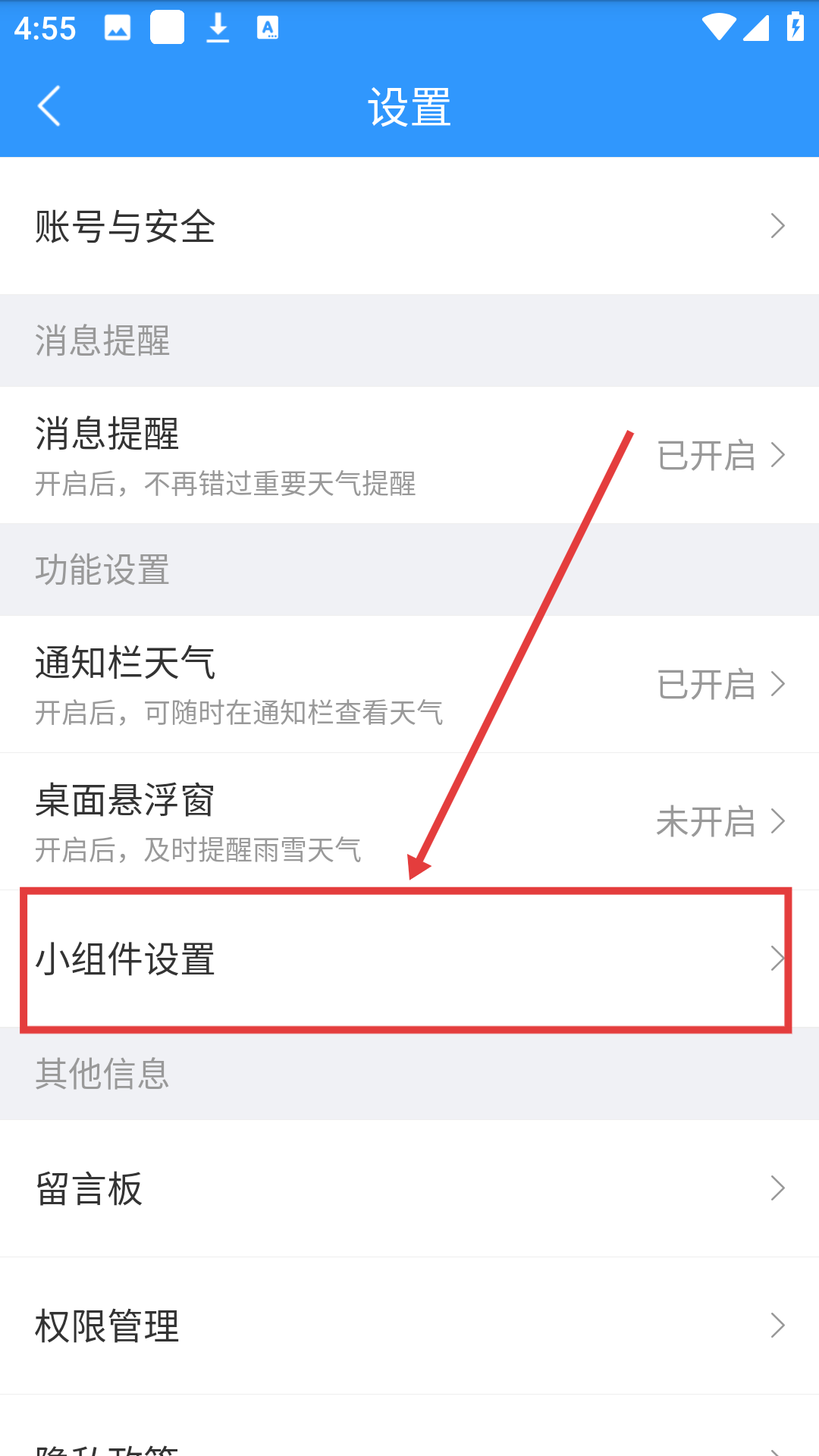 3、在设置里,点【小组件设置】,可对桌面小组件进行配置呢。