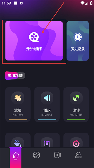 1、在主界面点【开始创作】按钮,能进入视频编辑页面,后续可对视频进行剪辑、加特效等操作啦。