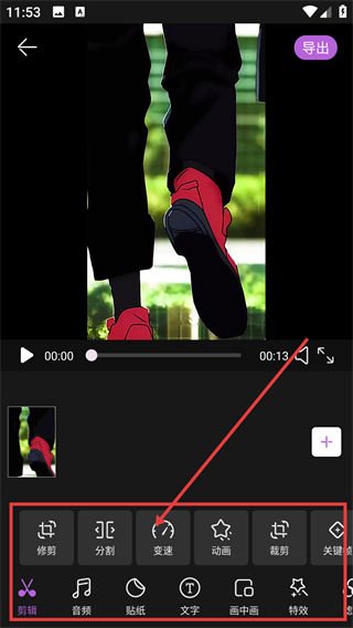 2、进入编辑页后,点底部【变速】选项,就能打开变速功能面板,调整视频的播放速度哦。
