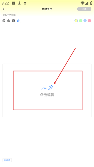 3、在创建卡片页,先输入卡片标题,再点击“点击编辑”区域,即可开启卡片内容的编辑操作呀。