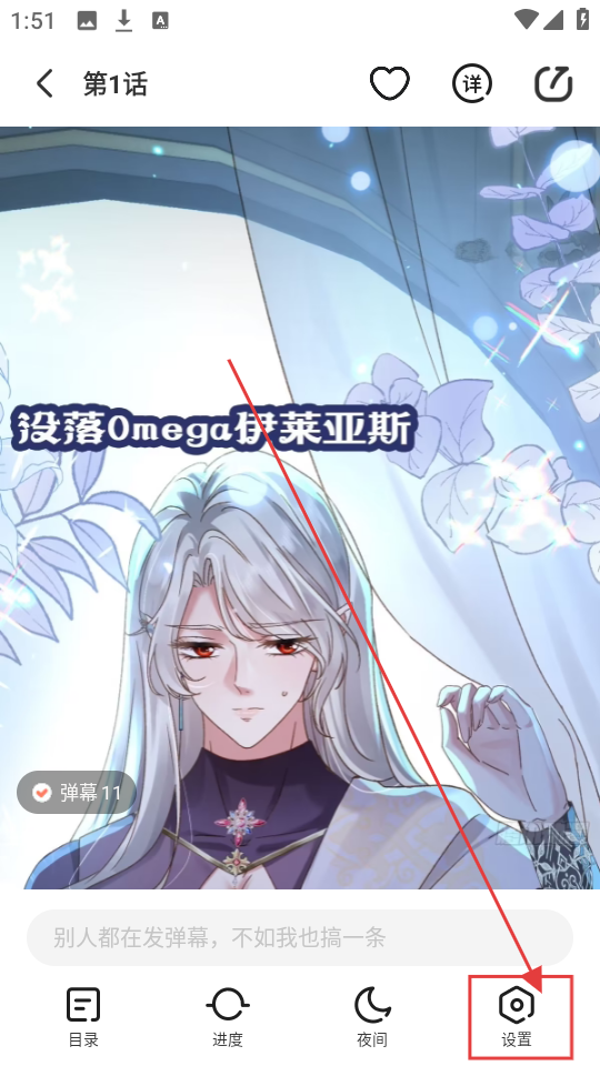 3、阅读漫画时,点击【设置】,可以调整亮度、阅读模式等,让阅读体验更舒适哦。