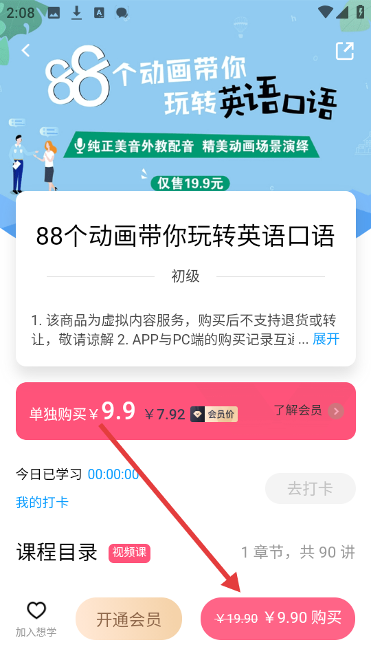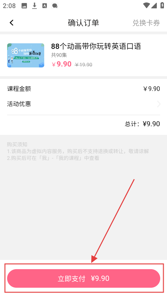 4、进入确认订单页面,核对订单信息无误后,点击【立即支付¥9.90】,就能完成课程支付,购买该课程啦。