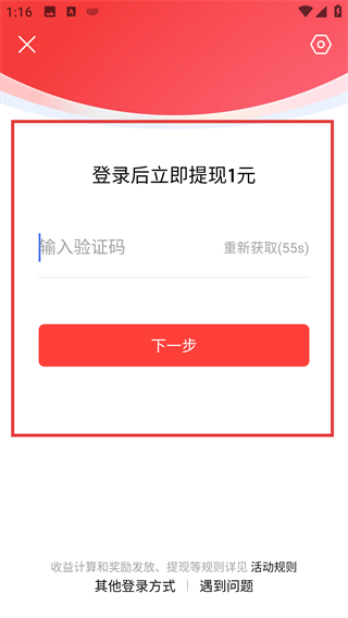 3、参与任务时会弹出登录提示,输入验证码后点击【下一步】完成登录,就能解锁提现等权益啦。