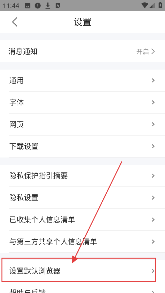 3、进入设置页面,能看到各类设置选项,若要设置默认浏览器,点击【设置默认浏览器】呀。