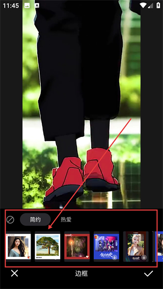 3、在边框设置界面,选择【简约】分类下的边框样式,点击对应样式就能应用到当前图片上啦。