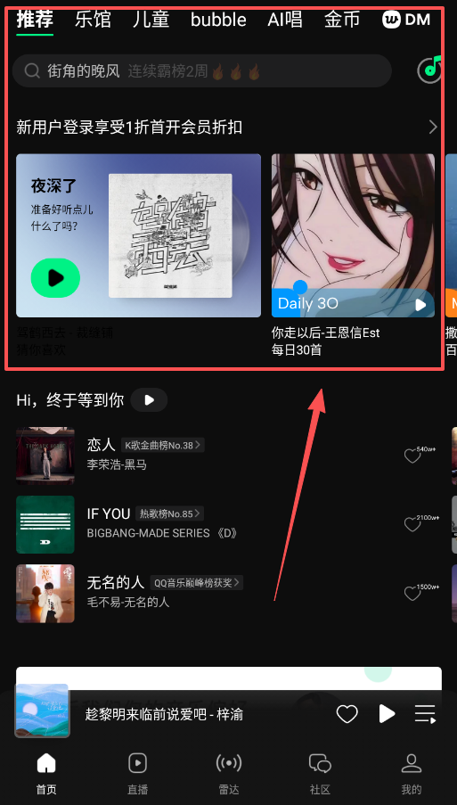 1、作为新用户,打开app后先别急着找歌,留意一下弹窗或首页的新人1折会员优惠,开通后能无损收听大量高品质音乐。