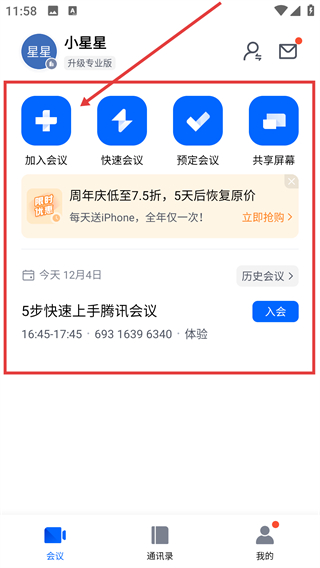 2、进入加入会议页后,输入会议号并确认参会信息,点击【加入会议】就能进入对应的会议啦。