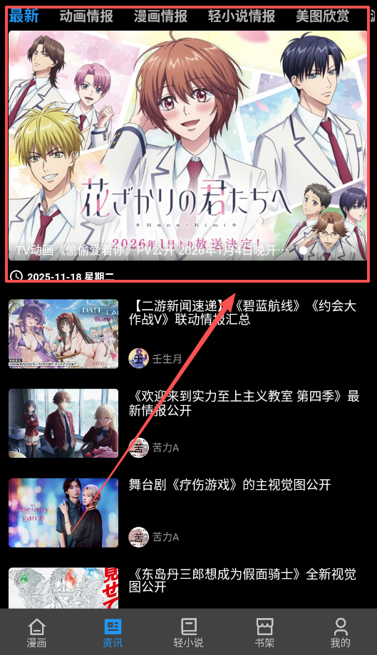 3、浏览资讯内容时,可以点击底部导航栏的资讯,这里分为最新、动画情报、漫画情报等类别。