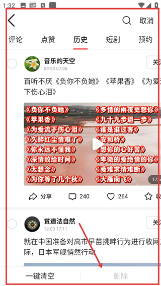 4、进入编辑模式后,可选择要清理的记录,点击【删除】就能快速删除历史记录啦。