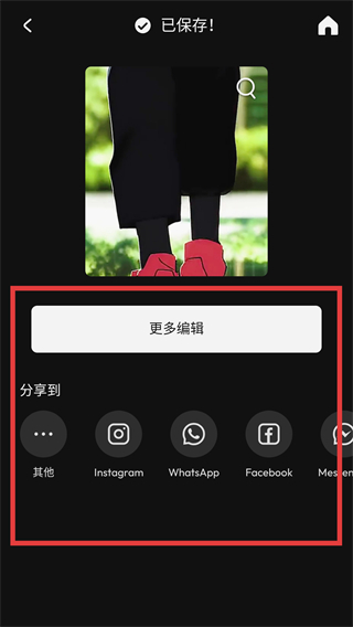 4、图片保存成功后,可点【更多编辑】继续优化,也能选【分享到】把图片发至社交平台哦。