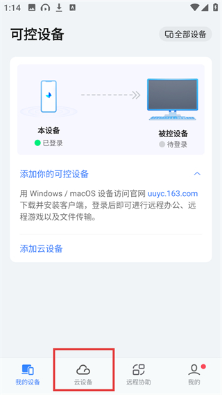 1、在可控设备页面点击底部【云设备】选项,就能进入云设备市场页面,查看各类云设备资源啦。