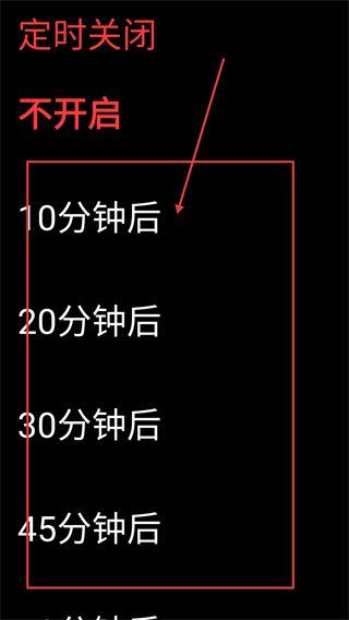 3、在定时界面里,可选择10分钟后、20分钟后等时长,选好后就能设置自动关闭啦。