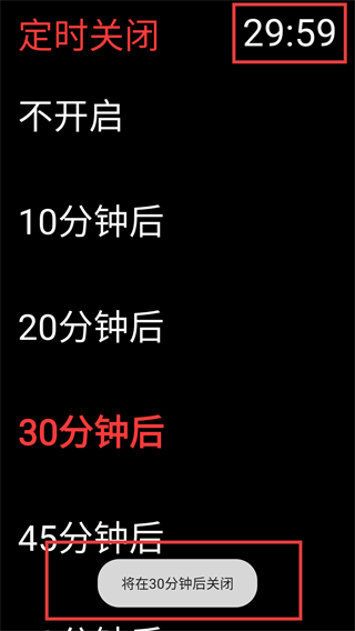 4、选定时长后,界面会显示倒计时,还会提示“将在XX分钟后关闭”,这样就设置好啦。