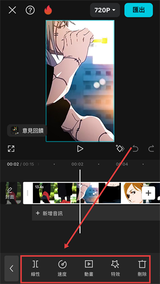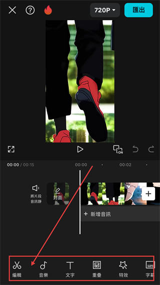 2、进入视频编辑页后,点底部【編輯】选项,可展开剪辑工具,对视频片段进行基础调整哦。