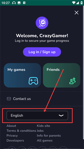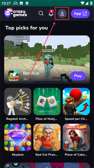 1、在【crazygames】主页面点击顶部的个人图标,就能进入个人中心页面,查看账号相关功能啦。