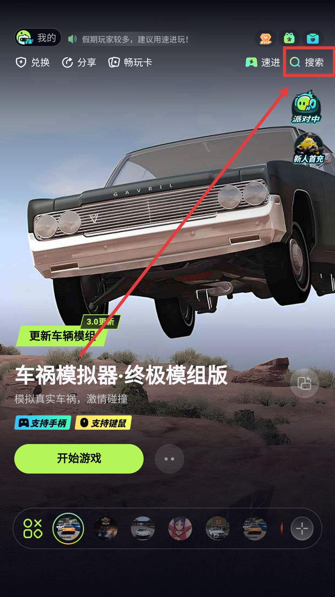1、在APP页面,点击右上角【搜索】,可进入搜索页面,准备查找想玩的游戏啦。