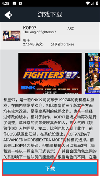 4、若游戏未下载,会跳转到游戏下载页,点【下载】按钮就能获取【KOF97】这款游戏啦。