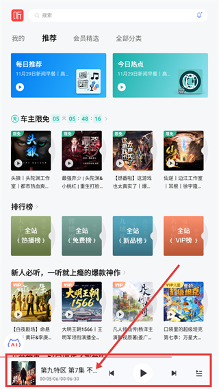 1、在APP的推荐页,点击底部播放栏的【第九特区-第7集】,进入该音频的播放详情界面啦。