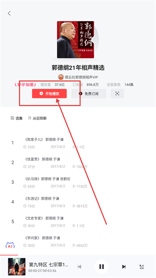4、进入专辑详情页后,点【开始播放】就能收听该专辑里的音频内容,开启趣味听觉体验哦。