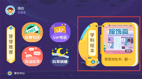 1、游戏主界面点击红框标注的【学科绘本】,进入该绘本的详情页面开启阅读体验。