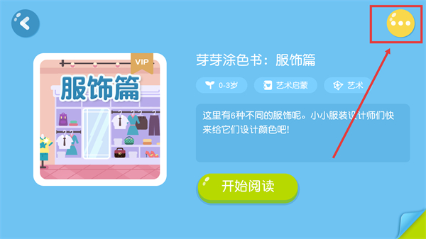 2、【芽芽涂色书:服饰篇】详情页点击红箭头指向的设置按钮,打开播放相关的功能设置面板。