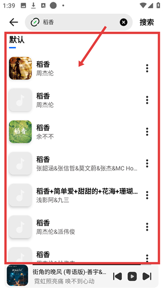 3、搜索结果出来后,能看到多版本的目标歌曲,选心仪的那个就能进入播放页啦。