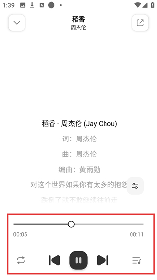 4、进入歌曲播放页后,可用底部的播放控件,控制歌曲的播放、暂停或切换哦。