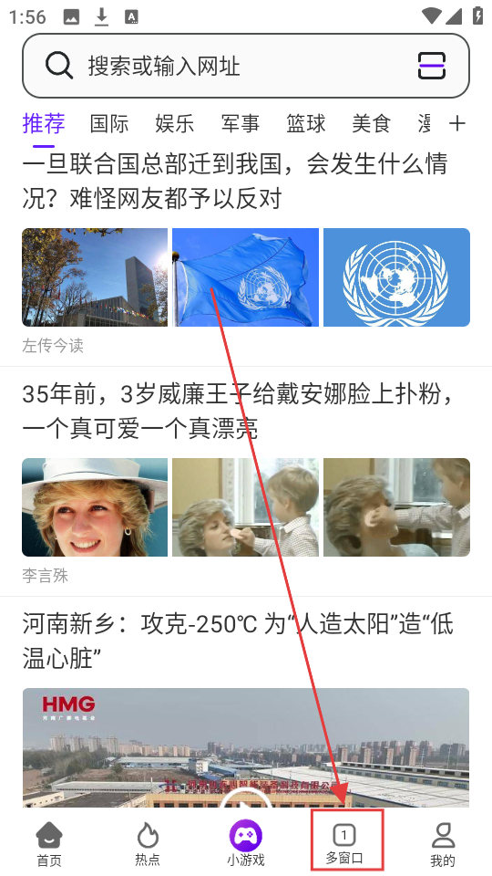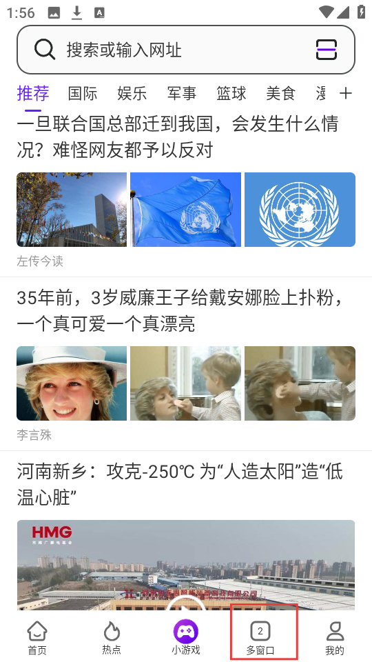 4、多窗口开启后,底部【多窗口】标识会显示窗口数量,方便切换和管理窗口啦。