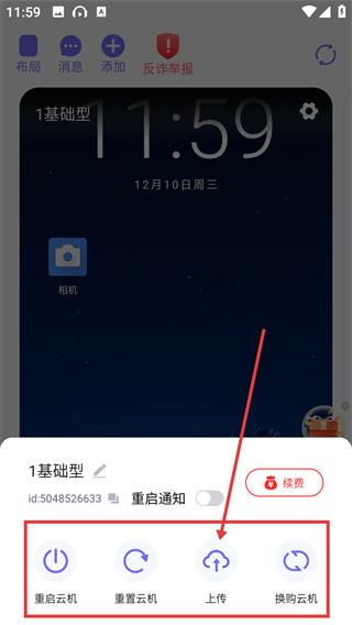 3、进入云机管理界面后,能使用【重启云机】【重置云机】等功能,灵活管理你的云设备状态哦。