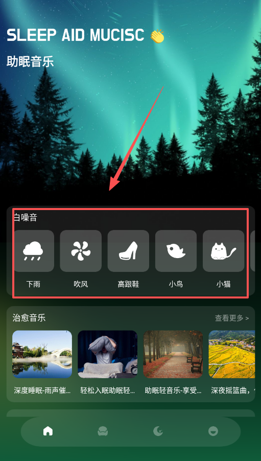 2、睡不着的时候可以去助眠音乐板块逛逛,里面有雨声、风声甚至小猫的呼噜声,随便点一个听听,看看哪种对你最管用。