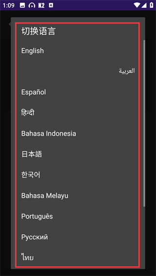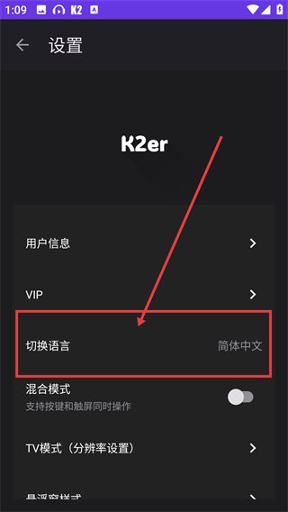 2、进入设置页面后,找到【切换语言】选项,点击它就能打开语言选择的列表,更换应用语言哦。