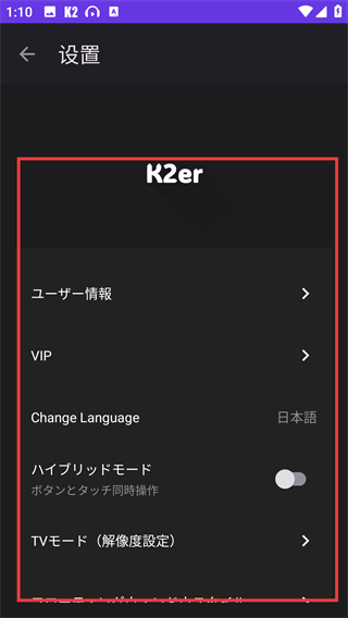 1、在K2er首页点击右上角的【设置】按钮,就能进入设置界面,调整应用的各项配置啦。