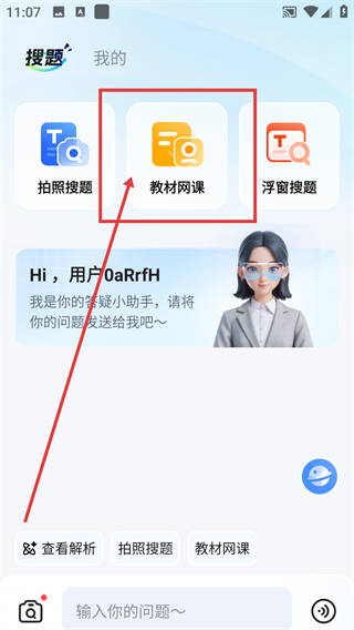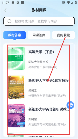 1、在搜题页面点击【教材网课】选项,就能进入教材相关的学习内容页面,开始查找对应教材啦。