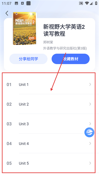 3、在教材详情页,可看到分单元的内容列表,点击对应单元,就能查看该单元的具体学习资料啦。