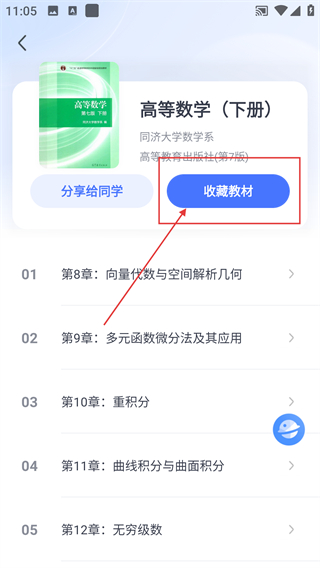 3、进入教材详情页后,点击【收藏教材】按钮,可将该教材添加到收藏列表,方便后续快速查找哦。