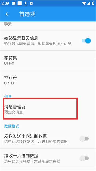 2、进入首选项页面后点击【消息管理器】选项,就能进入消息管理界面,配置预定义消息哦。