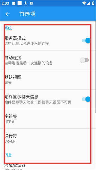 4、在首选项页能调整【服务器模式】【自动连接】等功能,按需配置后优化使用体验哦。