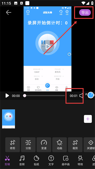 4、修剪完成后,点击右上角的【导出】按钮,就能把剪辑好的视频保存下来,还能看到时长变化哦。