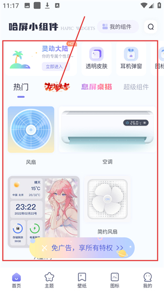 哈屏小组件是一款功能齐全丰富的小组件app,各种海量丰富实用的组件功能在这里都可以轻松找到,如时间,天气,主题,皮肤等各种都有,用户任意挑选设置,全部免费体验,让自己的手机布局看起来更加清晰,同时用户还可以自定义设置背景,大小,根据自己喜欢的风格去布局,自定义布局需求非常方便,有感兴趣的用户可以一起来看看。