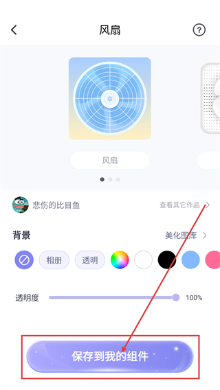 2、在组件编辑页调整好背景、透明度等设置后,点击【保存到我的组件】按钮,就能把组件存起来啦。