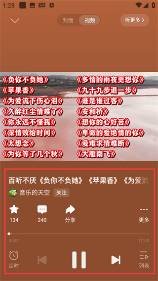 3、在听音乐页面,选择心仪的音乐合集(如百听不厌系列),点击对应的条目就能进入该合集的播放界面哦。