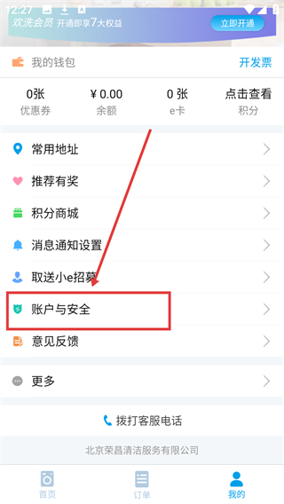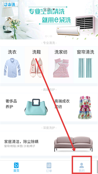 1、在e袋洗首页,点击底部的【我的】选项,进入个人中心页面,可查看账户相关功能入口啦。